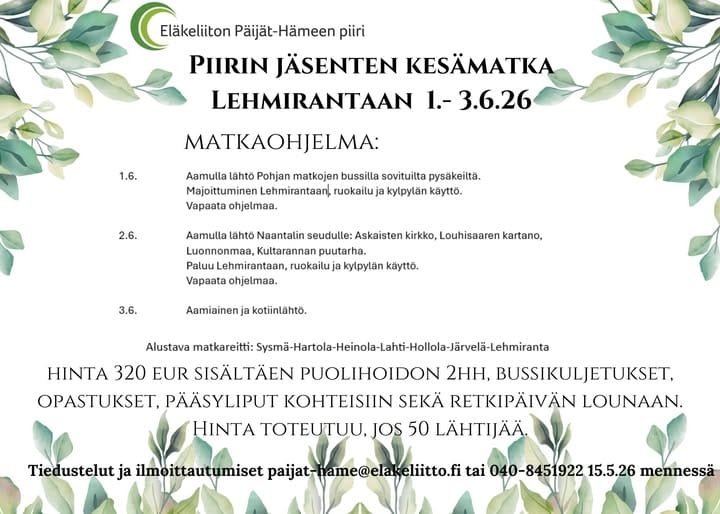Piirin jäsenten kesämatka Lehmirantaan 1 – 3.6.2026